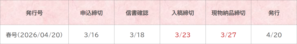 次回の 2026年春号 は、2026年4月20日に発行予定です。