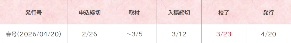 ※校了日以降の修正やデータの差し替えは致しかねますので、予めご了承ください